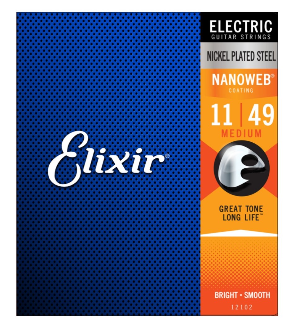 Elixir E12102 Electric Guitar Strings Nanoweb Coated Medium Gauge 11-49
