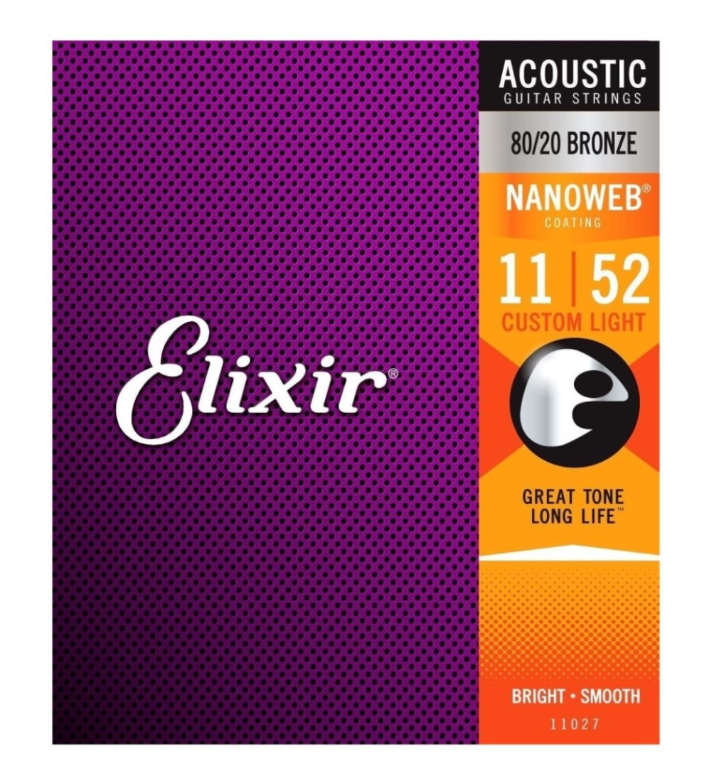 Elixir Nanoweb 80/20 Bronze Acoustic Guitar Strings - Custom Light Gauge 11-52