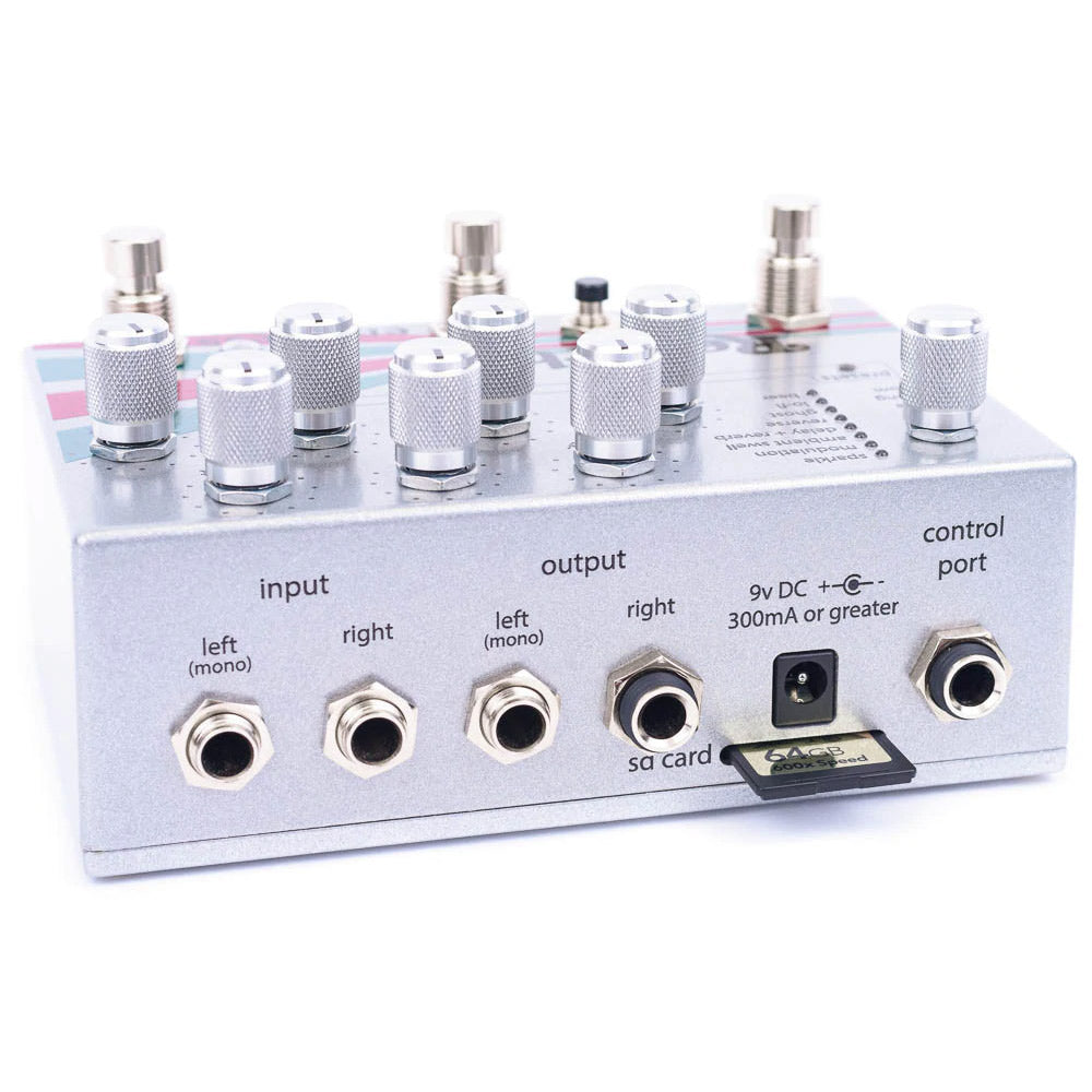 - 32 studio quality algorithms as of firmware 6.0 and counting – The pedal has 12 algorithm types, some include multiple variations. For example, vintage and studio plate, dark and bright springs. Also, as more algorithms get added you can update your pedal via the SD Card. It’s the pedal that keeps on giving.