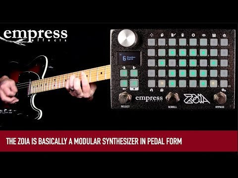 The Empress Effects ZOIA is a modular synthesizer in a compact pedal form. It offers a user-friendly platform for building custom effects, synthesizers, MIDI controllers and virtual pedal boards. The ZOIA provides a wide range of modules that can be combined in an almost unlimited number of ways, allowing for extensive customization and creativity. It is designed for musicians, sound engineers and DIY enthusiasts making it a great tool for those with varying levels of technical expertise.