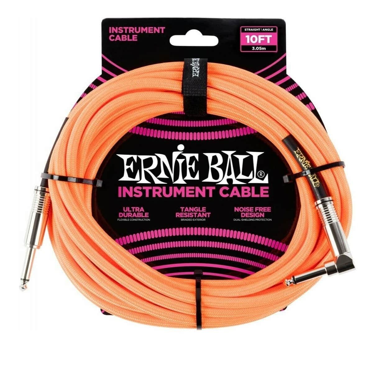 Ernie Ball P06079 10ft Braided Straight/Angle Instrument Cable Lead - Neon Orange