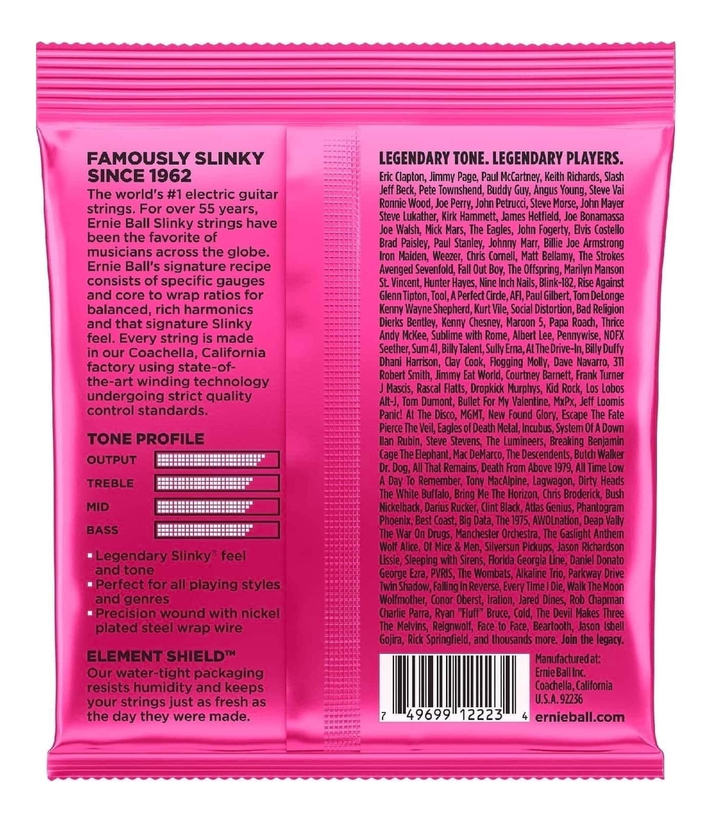 Ernie Ball Slinkys®, the iconic light gauge electric guitar strings widely revered by hundreds of guitar greats including Jimi Hendrix, Eric Clapton, Keith Richards, Jimmy Page, The Edge and John Mayer.