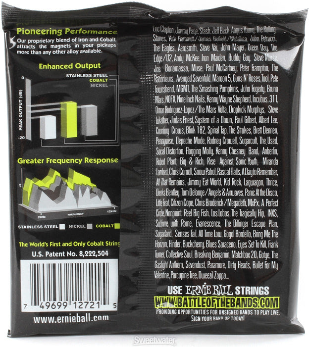 Ernie Ball Cobalt Slinkys®, the iconic electric guitar strings optimised with a new alloy formulation widely revered by hundreds of guitar greats including Steve Morse, John Petrucci, Randy Jackson, Tony Levin, and Slash