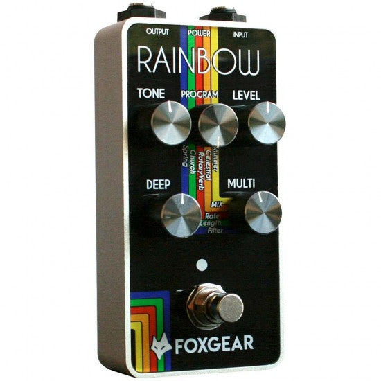 The latest entry to the Foxgear lineup is the Rainbow. The Rainbow Reverb is the ultimate digital reverb effect. The Rainbow is based on the well known and reliable DSP FV-1 used in most of the boutique pedals in the market, it offers 5 reverb presets that include 2 mind-blowing shimmering algorithms in addition to the other 2 classic reverb effects and an innovative and inspiring “RotaryVerb” (imagine to putting an old rotary speaker right in the middle of the Pantheon temple in Rome…) These features are all at a fraction of what other boutique pedals cost.