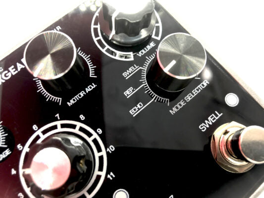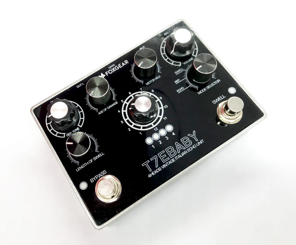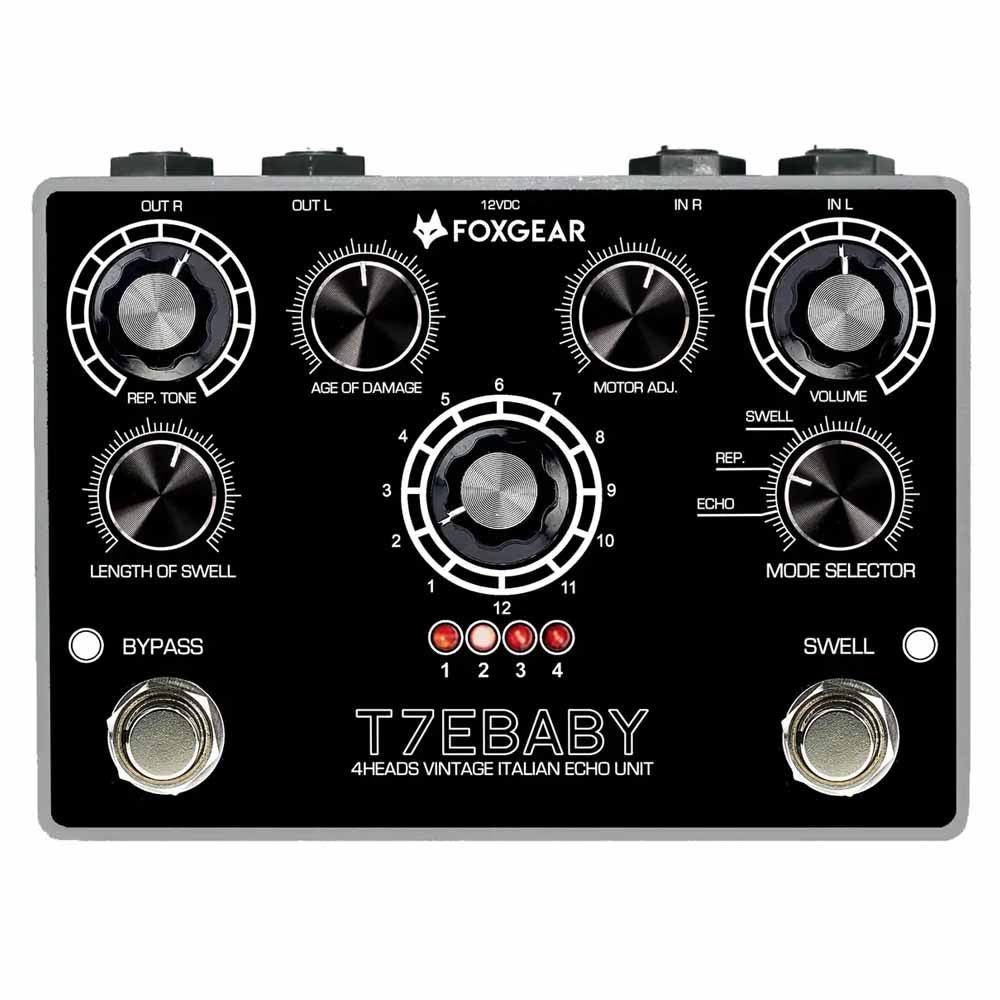 After the great success of the FOXGEAR Echosex Baby, we pushed our next project the FOXGEAR T7E Baby to the max, expanding on the features of our famous “Binson-inspired” circuit, plus with the complete palette of options that the original Binson Echorec T7E offered, with a full 4 Heads combination, STEREO ENGINE, Three working modes Echo, Repeat, Swell, and the ability to recall the Swell mode as a “preset” with a dedicated footswitch.