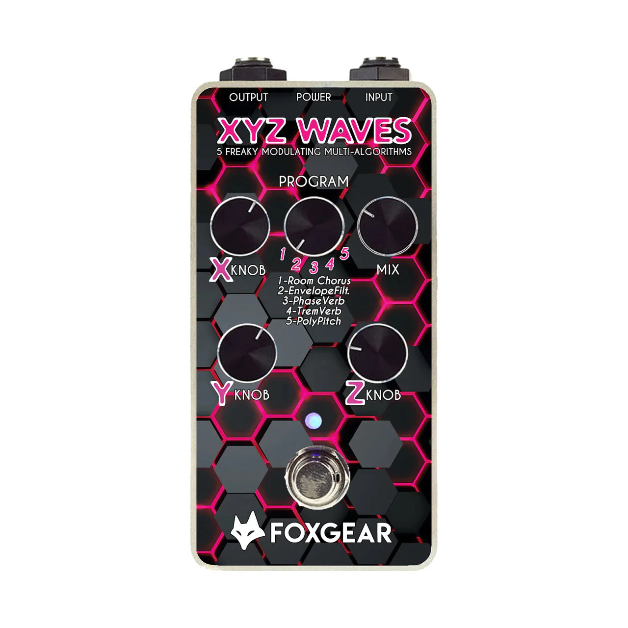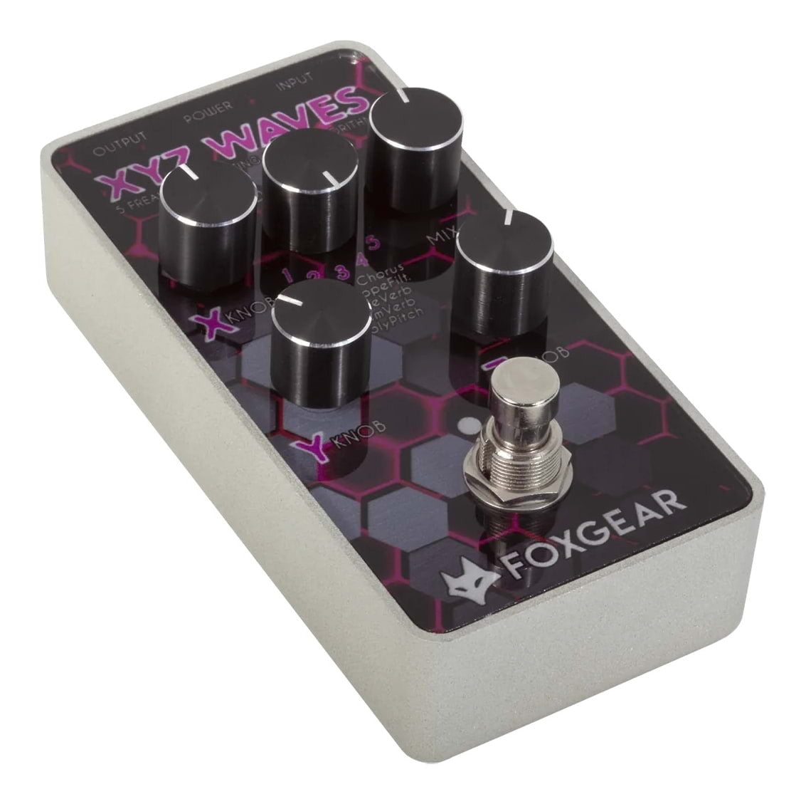 As with all of Foxgear effects, the XYZ Waves is true bypass and signal path is 100% Analog, It doesn’t convert your signal to digital, keeping your tone intact. The “conventional “Chorus, Phase and Tremolo Algorithms are coupled with a Reverb (the X-knob controls the Reverb amount) while the “unconventional” algorithms like Envelope filter or the stunning Polypitch expand your creativity as never before. The XYZ WAVES, gives you all the facility and sound quality of bigger and more expensive multi effect units in a pedal board friendly size, cool look, and without breaking the bank!