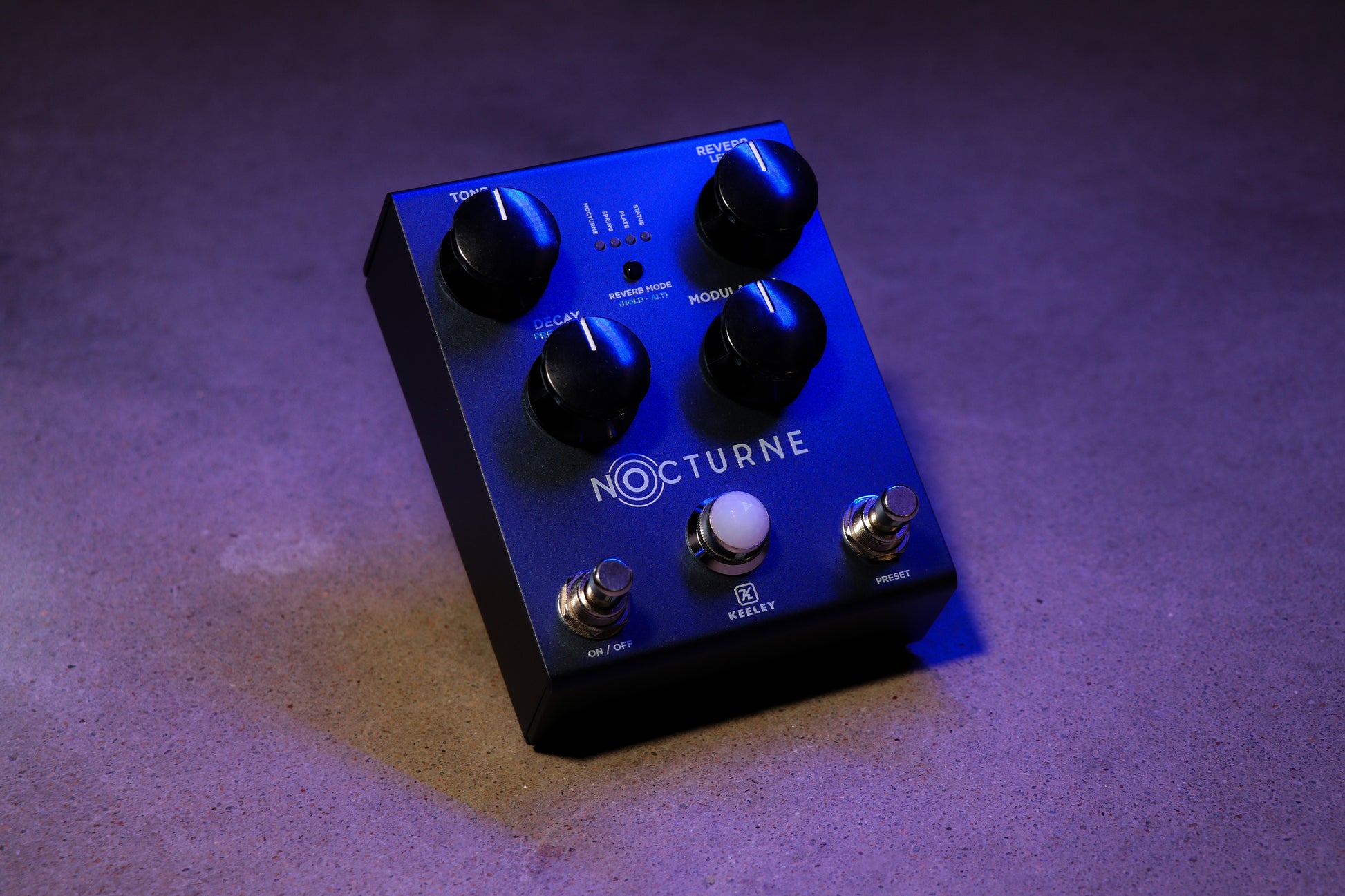 The NOCTURNE pedal gives you three new reverb modes — Nocturne, Spring, and Plate — each designed to be the guitar and amp’s perfect companion.