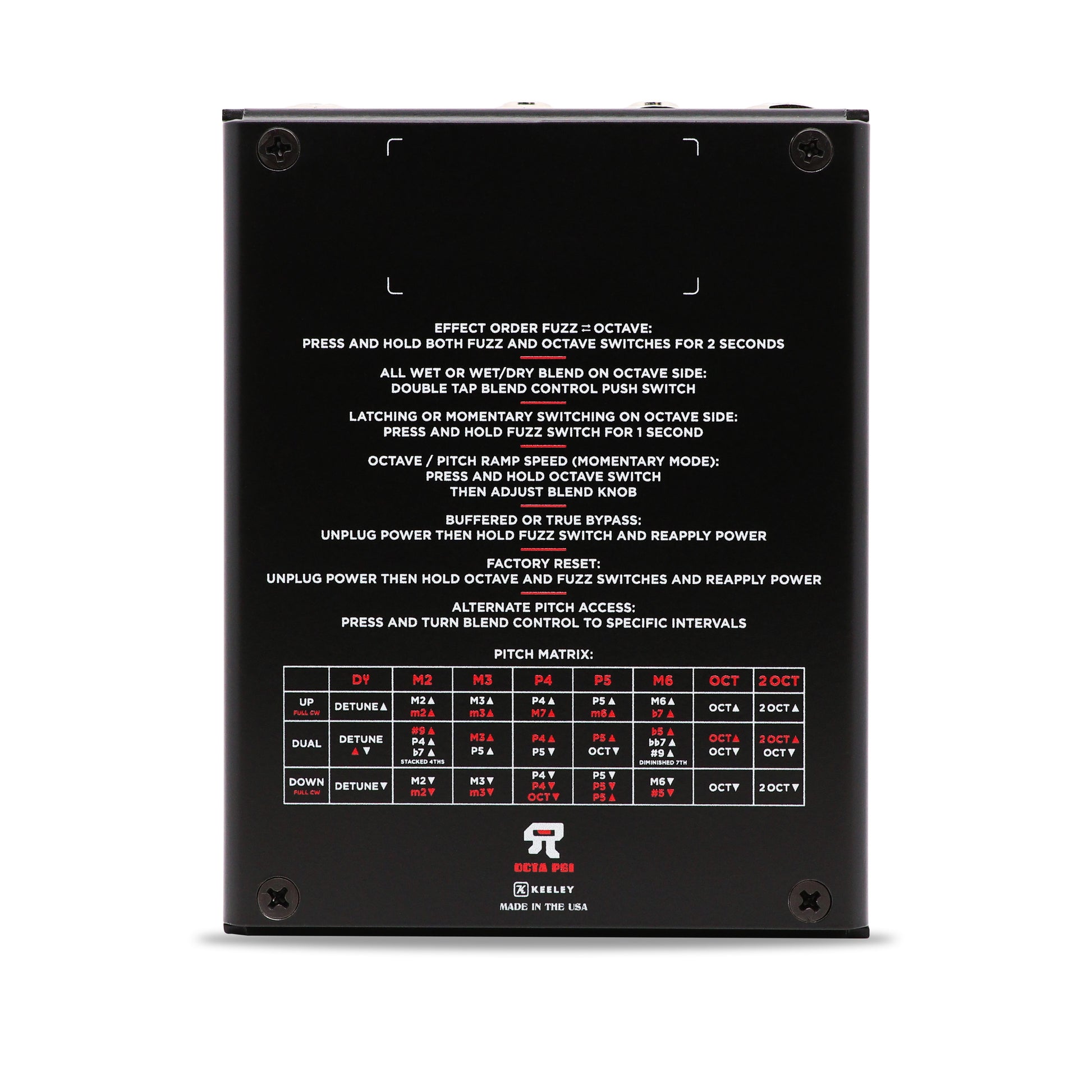 The Octa Psi is an all in one Octave, Pitch-Shifting & Fuzz pedal for guitar and bass players alike. It's a masterclass in what Keeley does best. Artfully combining beloved circuits while infusing new sounds, more functionality, unmatched build quality and all at an incredible price. On board features abound as well as on-the-fly gestures for FX Order, All Wet, Momentary/Latching, & True or Buffered Bypass.